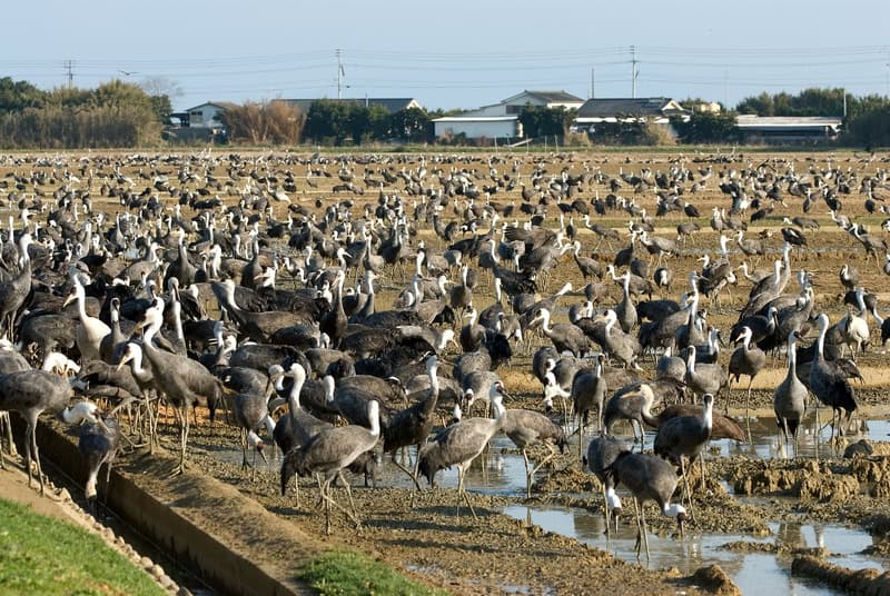 Why go to Arasaki? The answer is cranes, cranes, and more cranes. Thousands of cranes of several species can be seen in one location. White-naped Cranes and Hooded Cranes make up the majority, but you can often see a few Sandhill and Common Cranes as well.